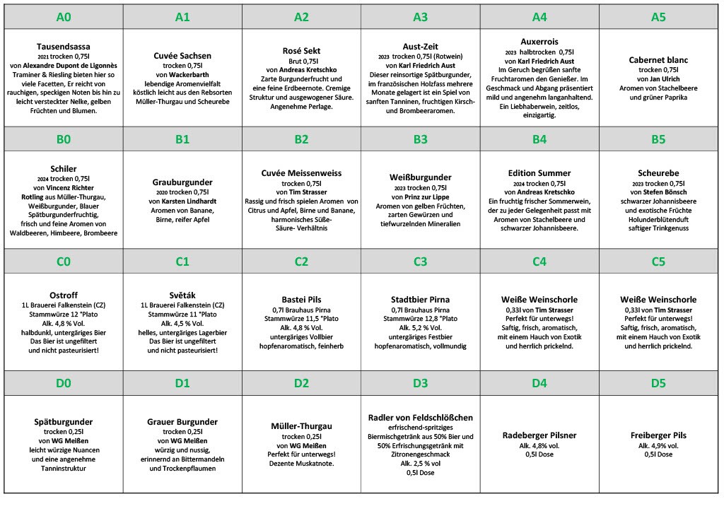 Warenliste Weinautomat